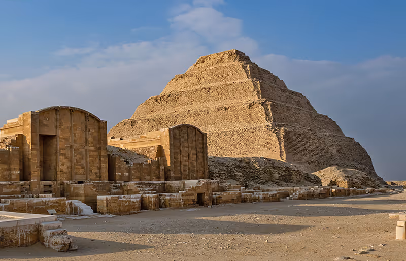 A la hora indicada, y después de disfrutar de nuestro desayuno bufé, iniciaremos el regreso hacia El Cairo para visitar la zona arqueológica de Saqqara, donde se encuentra la famosa Pirámide Escalonada, considerada la primera pirámide construida en el Antiguo Egipto.